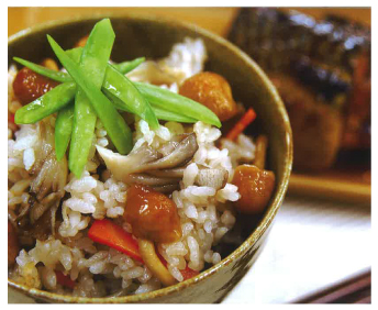 お米に水(きっちり2合の目盛)、①②の材料と極みだしを2パック・しょうゆを入れ、30分浸した後、炊きます。